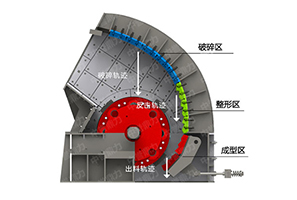 當物料進入破碎腔后,電機帶動轉子旋轉,轉子帶動錘頭將物料打到反擊板上進行破碎,過后在進行反拋進行再次破碎,重復以上過程,物料會由大到小,等破碎到合適粒度,就會從排料口出來,而且出料粒度可以根據自己的要求調整大小。