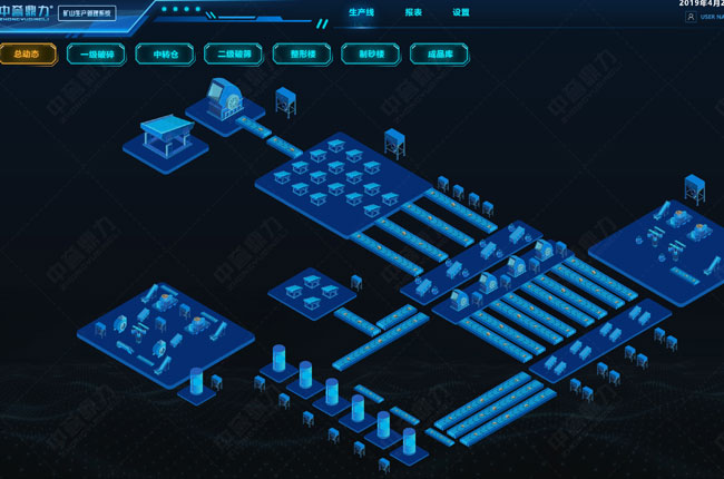 現(xiàn)代化砂石骨料生產(chǎn)線常用的集散控制手段為“礦山生產(chǎn)智能管理系統(tǒng)”。是通過計算機控制系統(tǒng),采用DCS化、模塊化和系列化設計,以通信網(wǎng)絡為紐帶,具有集中顯示操作管理、控制砂石生產(chǎn)線各環(huán)節(jié)各設備的管理,實現(xiàn)集中一鍵控制或單獨控制。
