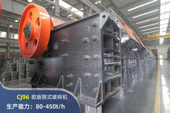 CJ96顎式破碎機(jī),俗稱96鄂破,進(jìn)料口尺寸930×580mm,進(jìn)料粒度在480mm,出料60-175mm,電機(jī)90kw,時產(chǎn)量80-450t/h。