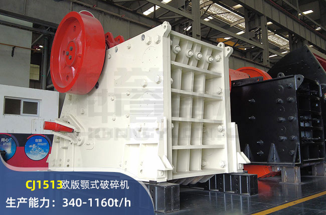 CJ1513顎式破碎機進料口尺寸1500×1300mm,進料粒度1040mm,出料大小150-300mm,電機功率200kw,時產可達1160噸。