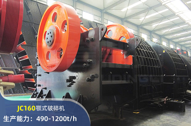 JC160顎式破碎機(jī)進(jìn)料口尺寸在1600×1200mm,進(jìn)料粒度≤1020mm,出料大小≤150mm,電機(jī)功率250kw,時(shí)產(chǎn)量在1200噸左右。