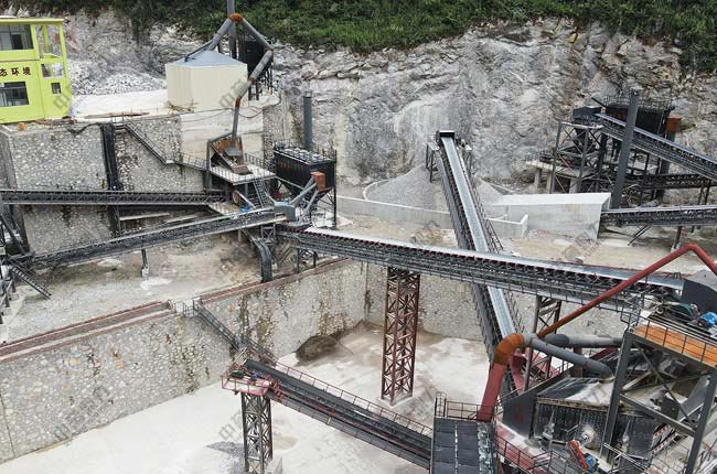 設備配置:DLZGC2050振動給料機、DLEV200顎式破碎機、HGC600M臥式旋回破碎機、3YKZ3680振動篩、輸送機。
