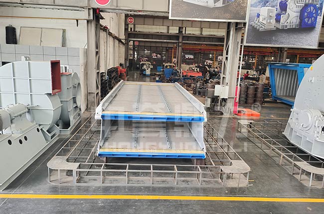 DLZGC2560振動給料機(給料設備):每小時給料2000-3000噸左右,進料粒度1600mm,運用37*2kw的電機,該型號目前是我廠產量較大的設備,用于生產線粗破設備之前。