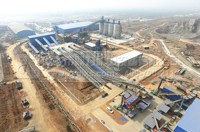 組成設備:砂石骨料生產線設備包括振動給料機、重型錘式破碎機、制砂機、圓振動篩、皮帶輸送機等