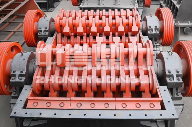 兩個轉(zhuǎn)子相對運(yùn)轉(zhuǎn)帶動破碎腔內(nèi)物料相互撞擊,物料反復(fù)碰撞形成了石料在破碎腔內(nèi)的自粉碎,大地了錘頭及部件的消耗。