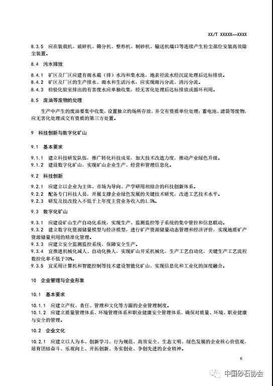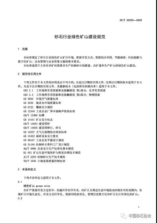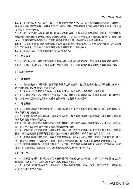 按照土資源行業制定程序要求和計劃安排,中砂石協會組織編制的《砂石行業綠色礦山建設規范》報批稿已通過土資源化技術委員會審查,現予公示。同時進行公示的還有《非金屬行業綠色礦山建設規范》等,共9項行業報批稿。