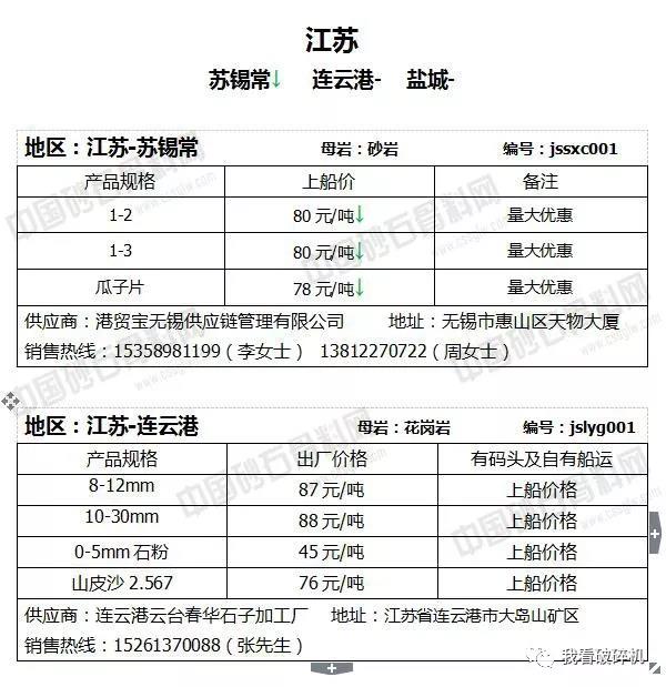 江蘇地區:蘇錫常砂石價格普遍下調2元/噸,連云港砂石價格相對持平,可能會有1元/噸左右的波動幅度。