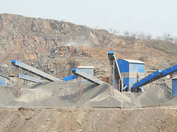 開采的巖石先由震動喂料機進料給pe鄂破進行大破,二破由圓錐石頭破碎機達成,圓錐式破石機出來的物料上篩石子設備進行篩選分級,過40毫米的物料返回圓錐式破石機又一次粉碎,引起閉路循環,不過40毫米的物料進入沖擊式破碎機進行整形粉碎,沖擊式破碎機出來的物料上成品篩進行篩選分級,過20毫米的返回沖擊式破碎機循環粉碎,不過20毫米的物料經皮帶機傳送至各個成品骨料堆。