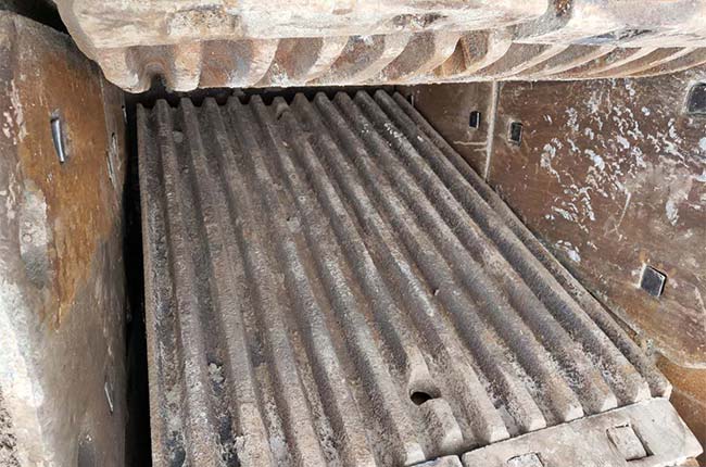三、物料重復(fù)擠壓,導(dǎo)致顎板表觀材料被局部壓裂或翻起,其碎裂或翻起部分又因?yàn)閿D壓打擊的物料一起掉落形成碎屑。