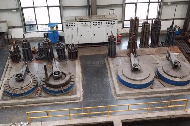 調質處理,主要針對錘軸、錘軸套、銷軸、篦板、主軸等設備部件。以錘軸為例,軸承要在深井式淬火爐中經過約850℃的加熱之后在水中快速冷卻,然后在回火爐中進行3~4小時的500℃保溫處理,經調制熱處理后的錘軸硬度會提高至30-40度,使其任性、塑性、強度達到較佳綜合機械性能,而錘盤的錘軸孔則在80千瓦自動高頻淬火爐中,利用電腦控制升溫加熱和循環水冷卻的具體時間,可視提高硬度、磨損的效果,錘軸孔質量穩定。