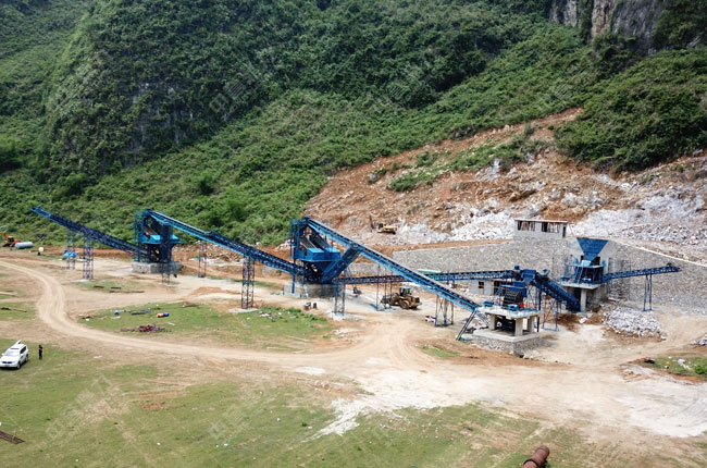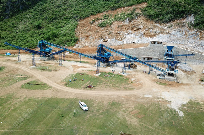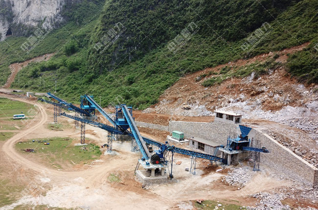 該項(xiàng)目位于廣西馬山縣,是一條新建的時(shí)產(chǎn)400-500噸的石料生產(chǎn)線,主要生產(chǎn)石灰石骨料,供南桂高鐵馬山段使用。