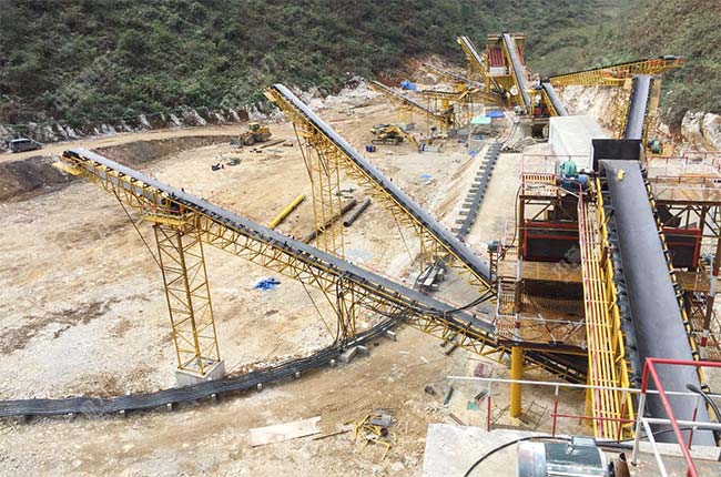 項目的主要特點是采用了一次破碎成型的生產工藝,原料進入振動給料機進行除土并均勻地送到重錘破碎機進行破碎,出來的石料經過篩分后由皮帶機輸送至不同的成品料堆,生產流程簡單,運營維護成本也比較低。