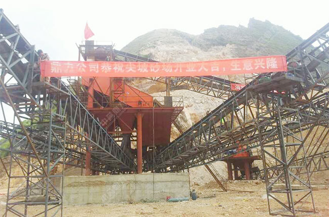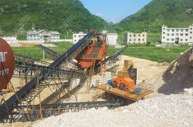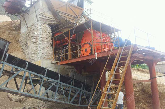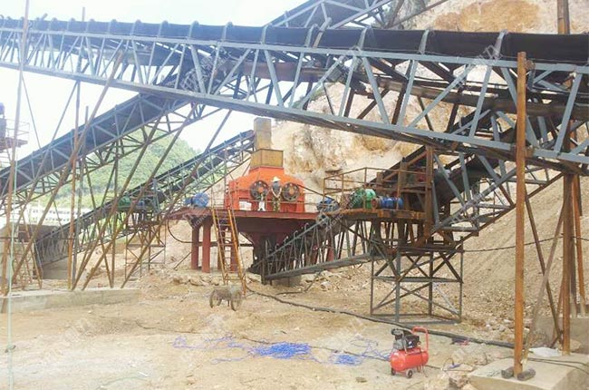 因為原料是硬度不太高的山石,所以選用了重型錘式破碎機當主破設備,可以將大塊的山石原料破碎成小塊石頭,便于進入制砂機內進行制砂生產,簡化了生產工藝流程,節省設備方面的投入成本。