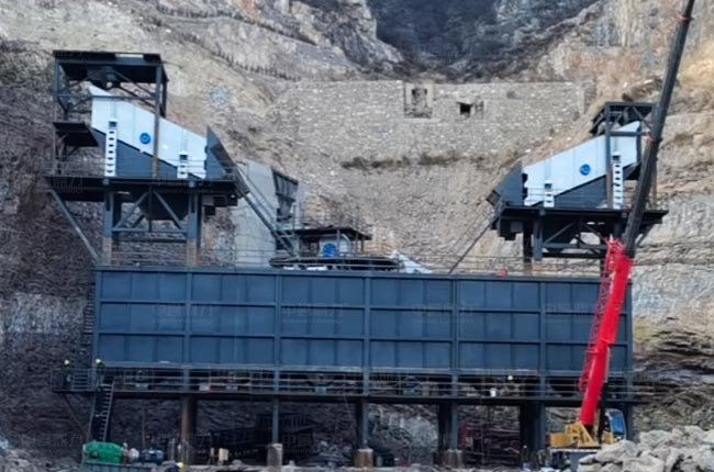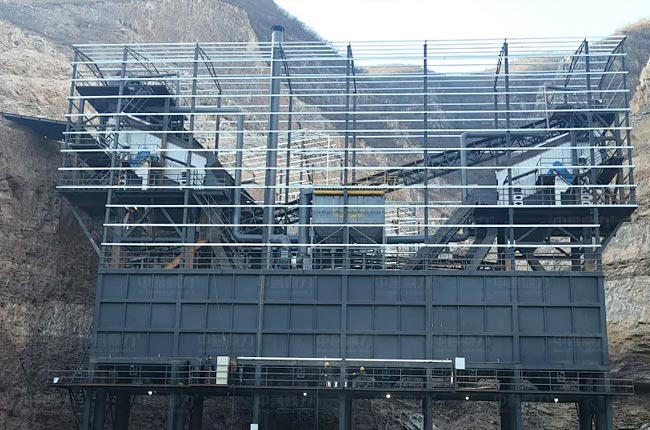 河北涉縣該項(xiàng)目立體式骨料生產(chǎn)線設(shè)計(jì),具有生產(chǎn)結(jié)構(gòu)緊湊,場地優(yōu)化等特點(diǎn)。振動(dòng)篩設(shè)備安裝于料倉頂部,大大節(jié)省安裝、輸送、結(jié)構(gòu)等成本。