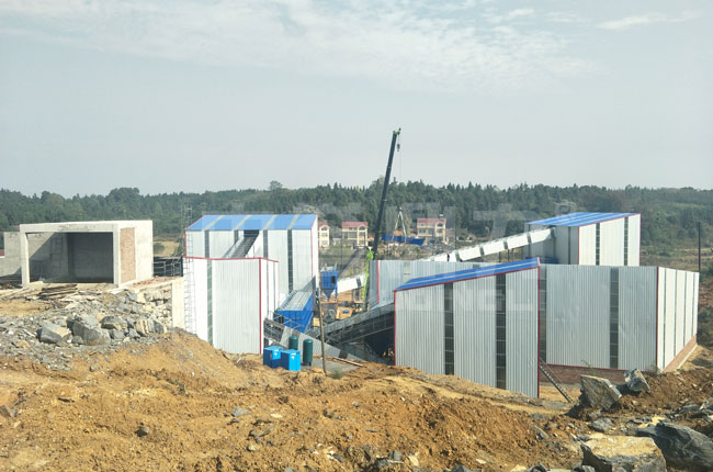這條時產1000噸的石灰石制砂生產線于2018年12月正式投入生產。設備采用中譽鼎力的DLPCZ1620重型錘式破碎機、DLSJ1218雙轉子制砂機及配套設備,生產0-5沙、5-10、12、13石子等石料。