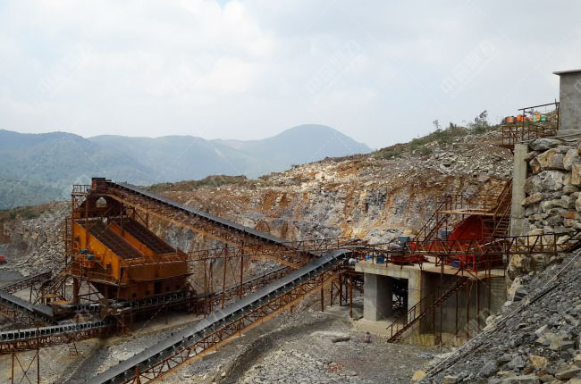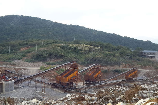 這條時(shí)產(chǎn)1200噸的碎石生產(chǎn)線,加工工藝較為簡單,主要采用錘式破碎機(jī)為主要碎石設(shè)備,生產(chǎn)0-5,5-10,10-20,20-30等多種不同規(guī)格的石料。