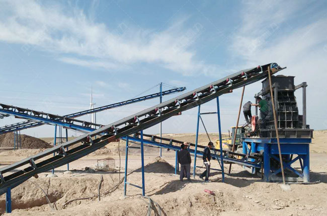 該時產200噸砂石生產線性能平穩、產量多,空間布局合理,相關設備組合合理,空間設計合理,空間布局緊湊,便于物料的流通和人員的操作。此條生產線為破碎硬質巖石的生產線,可以將硬度稍大的物料一次破碎成形,從破碎力度、破碎粒形、破碎效果等多個方面效果良好,可以破碎得到高質量硬質成品砂。