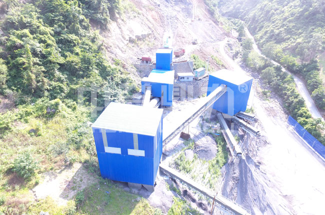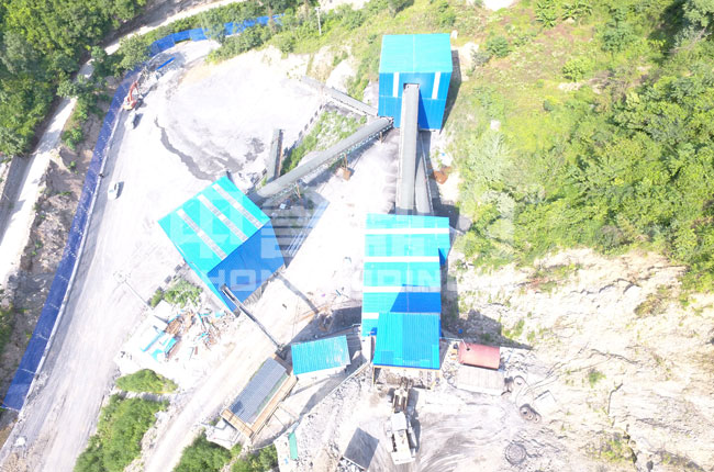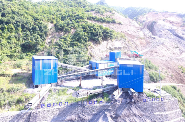 該項(xiàng)目是17年7月投入生產(chǎn)的,主要加工石灰石石料,生產(chǎn)各種規(guī)格的碎石物料。此條生產(chǎn)線采用鋼結(jié)構(gòu)封閉設(shè)計(jì),現(xiàn)場(chǎng)揚(yáng)塵較少,噪音小。