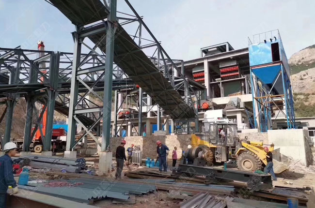 該年產500萬噸的環保型石灰石骨料生產線,自動化程度高,成品砂石級配高,粒型均勻,可滿足各種高等建筑的砂石料要求。同時為防止粉塵污染,采用多項環保設施,增加除塵器吸收粉塵。