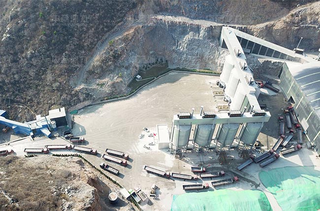 該項目主破采用PCZ1615重錘式破碎機,整形破,制砂機及整套礦山設備,整個工藝進行了封閉式環保設計,還配置了自動裝車系統,司機刷卡后,散裝機放料進行自動裝車,大大提高了裝車速度。