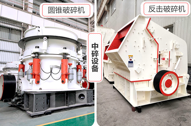 反擊破與圓錐破的關鍵區別在于其比較合適中硬物料的粉碎作業,鑒于采取的是擊打式粉碎原理,若解決硬度較高的物料很輕易產生反擊襯板、板錘磨損快的現象,反擊破的優勢為出料形狀好、石粉少,有利于調控粒型均勻等。