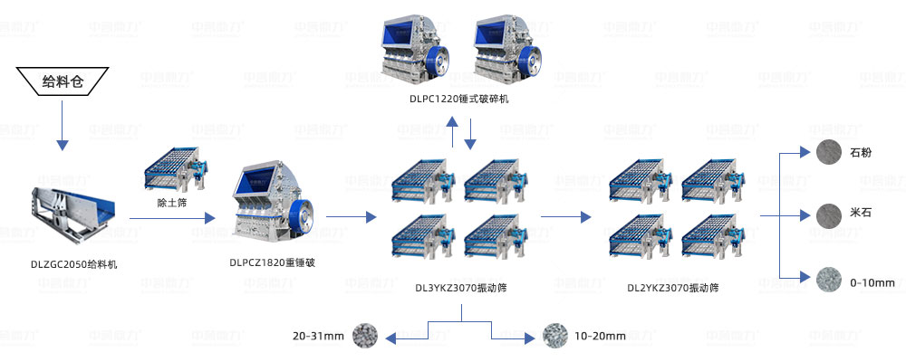 | 50畝 | 6000萬元 | DLPCZ1620重型錘式破碎機(jī) | 1-3 1-2 0-5 機(jī)制砂 |