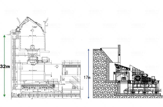 傳統旋回破和臥式旋回建設高度對比