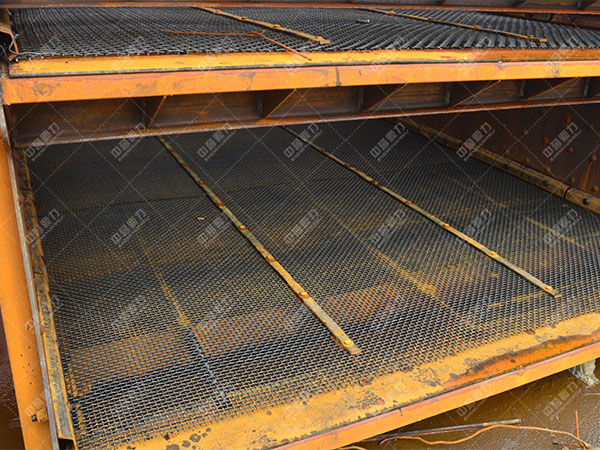 2)有的篩網(wǎng)表面較寬的ykz圓篩機(jī),如YAH2460單篩,篩網(wǎng)表面2.4m x 6.0m,則將篩網(wǎng)分成兩半,中間由壓板、螺釘將篩網(wǎng)壓住,兩頭用繃緊鉤將篩網(wǎng)向篩框方向繃緊,這類辦法在次安裝時(shí)尚可,多次安裝后,由于不變?cè)诤Y框梁上的帶內(nèi)螺紋的不變板上的螺紋或銹死,造成螺釘拆不出來,給維護(hù)供應(yīng)多不便,另外,從篩網(wǎng)無效的狀況看,盡管篩網(wǎng)變短了,但篩網(wǎng)摩擦扯斷的局面無改進(jìn)。
