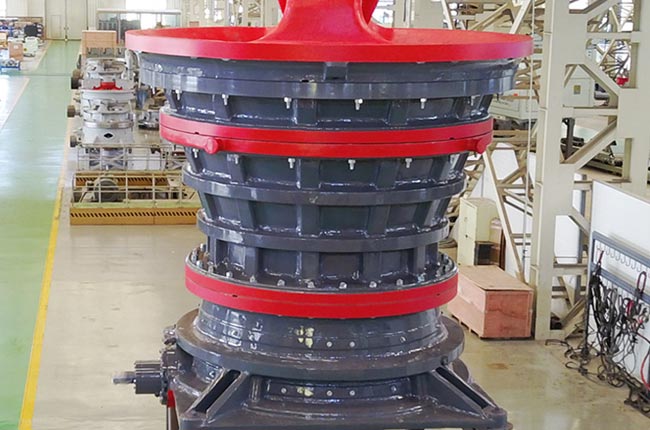 PSGB-2146彈簧圓錐破碎機屬于特粗型設備,破碎錐大端直徑2134mm,能破碎391mm以下的物料,出料口調整范圍38-64mm,一臺設備的時產量在1252~1941噸,屬于大型碎石設備,適合中大型砂石場生產碎石或機制砂。