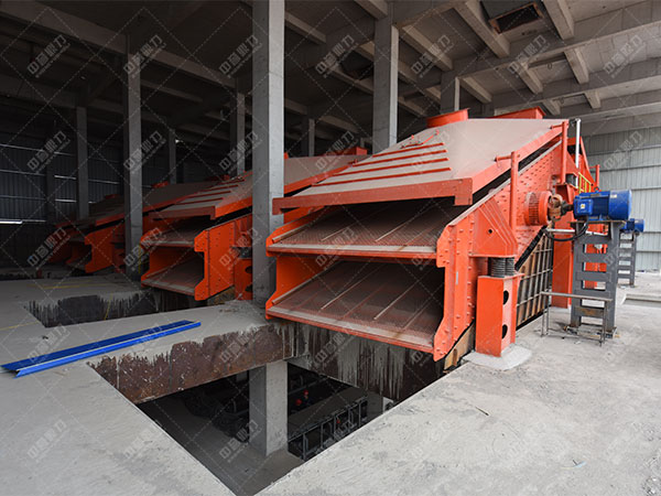 整型破碎整形機械,中等粒度石頭送入破沙機進行整型破碎后,由圓振動篩進行篩選分級,較大粒級石頭返送至破沙機又一次破碎,合格機械由帶式輸送機送至儲料堆貯存,細石頭送入砂石洗選機械清洗。