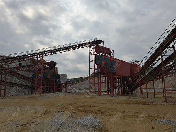 先,巖石由喂料機均勻地送進碎石機進行破碎,然后,產成的粗骨料由皮帶運輸機運輸至反擊式破碎機進行深度破碎,整型破碎后的巖石進礦山振動篩 篩選分級出不同性能的石子,不粒度合格的石子返料進反擊式破碎機又一次破碎,大塊巖石經料堆由振動喂料機均勻地送進顎式破碎機進行初級破碎,初級破碎后的巖石由皮帶運輸機送入反擊式破碎機進行深度破碎;整型破碎后的巖石由皮帶運輸機送進礦山振動篩 進行篩選分級,篩選分級出多種不同性能的石子,粒度合格的石子由成品皮帶運輸機送往砂石堆;不粒度合格的石子由皮帶運輸機返料送入反擊式破碎機進行又一次破碎,形成閉路多次循環,成品粒度可根據用戶的需要進行組合和分級,為保護環境,可搭配輔助的除塵機械,